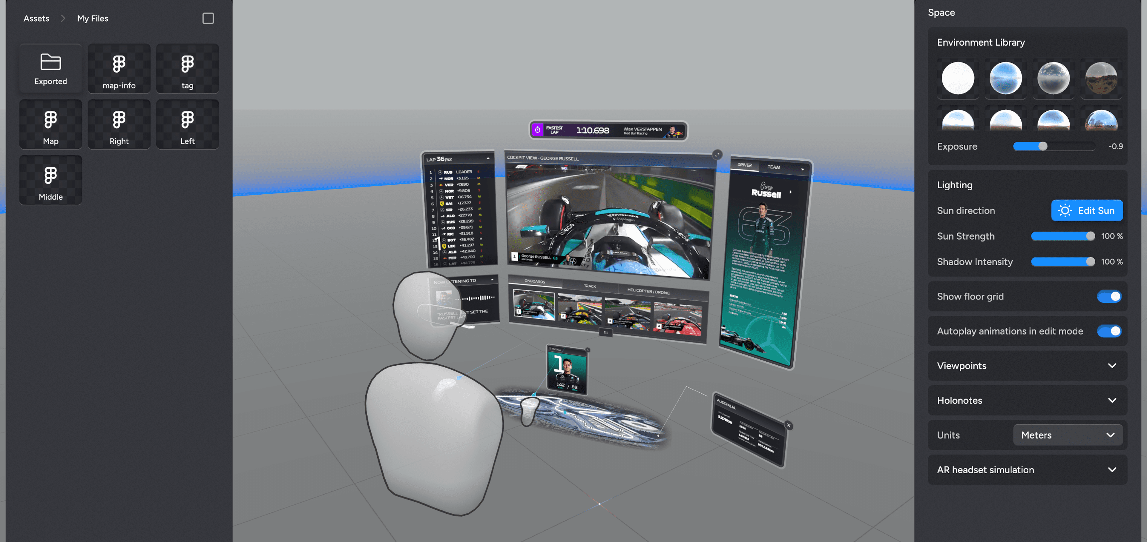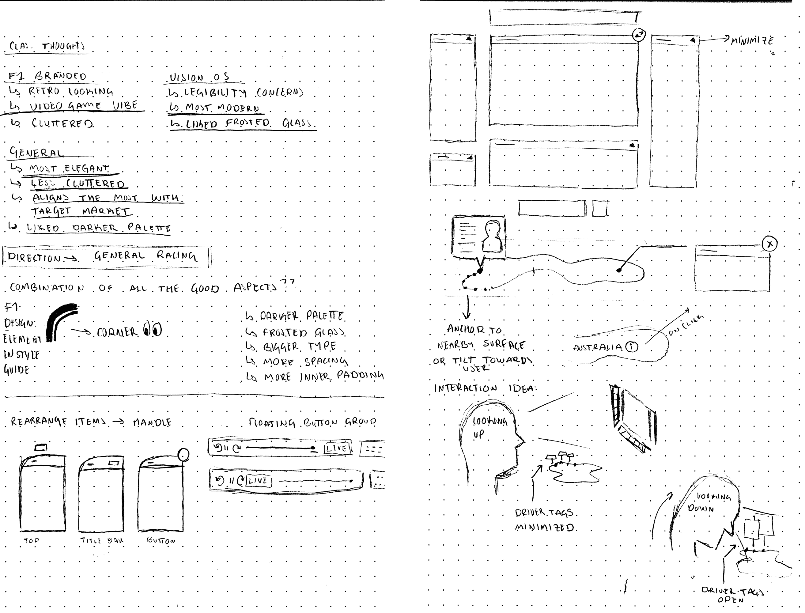 This project required end-to-end product design skills, from identifying an opportunity and defining user needs to translating complex, real-time race data into a clear spatial interface. I applied systems thinking and information architecture to organize multiple live data streams, interaction design to create intuitive controls in a 3D environment, and spatial UX principles to ensure comfort and readability during long sessions.