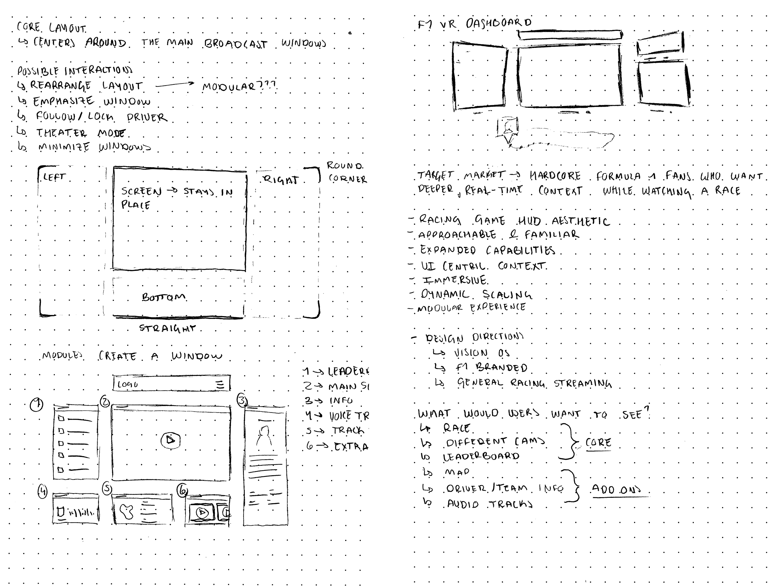 I assumed they would be willing to watch an entire race in a headset, likely in a seated or reclined position, and would value deeper context and control over the viewing experience rather than simplicity.