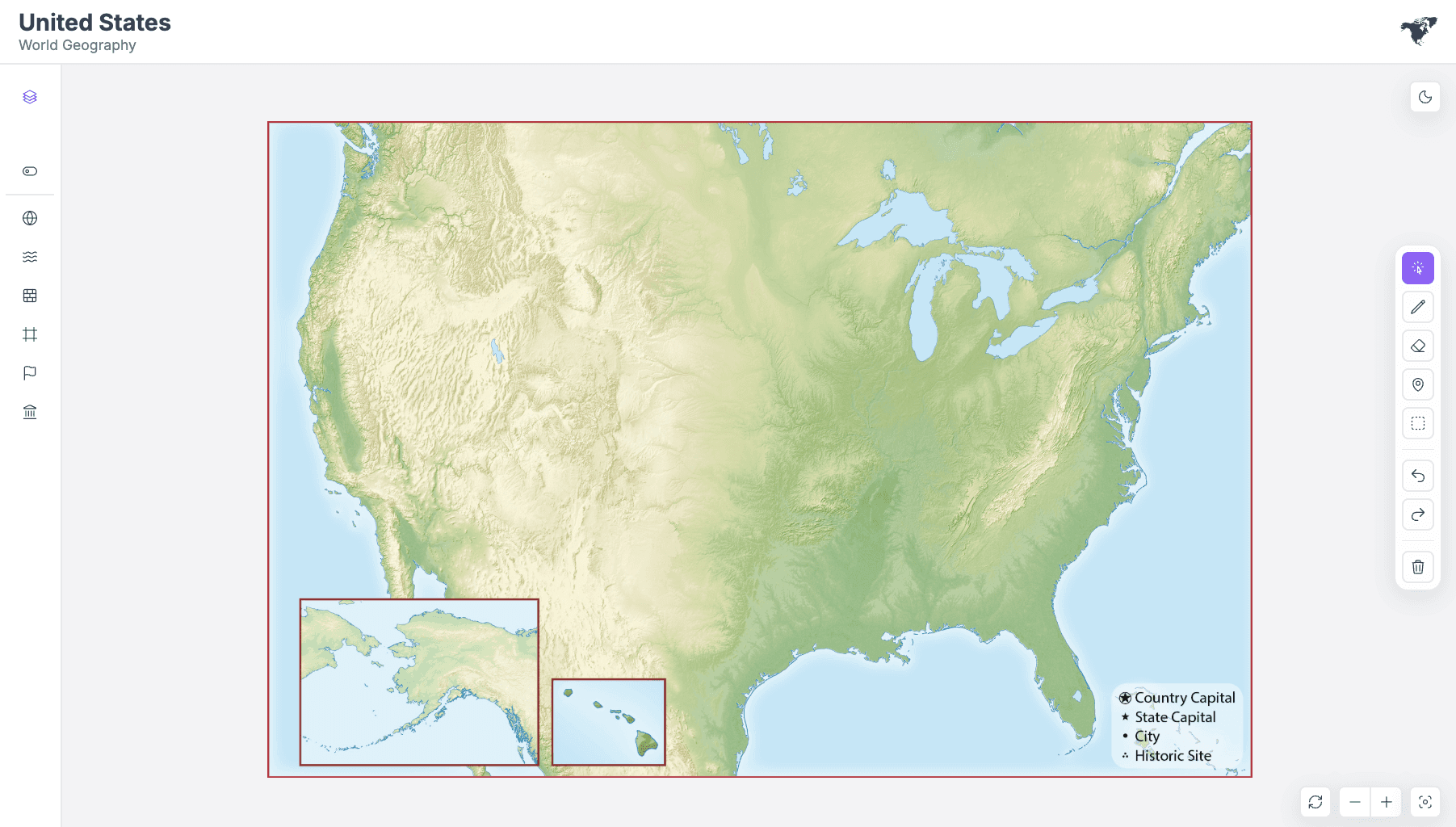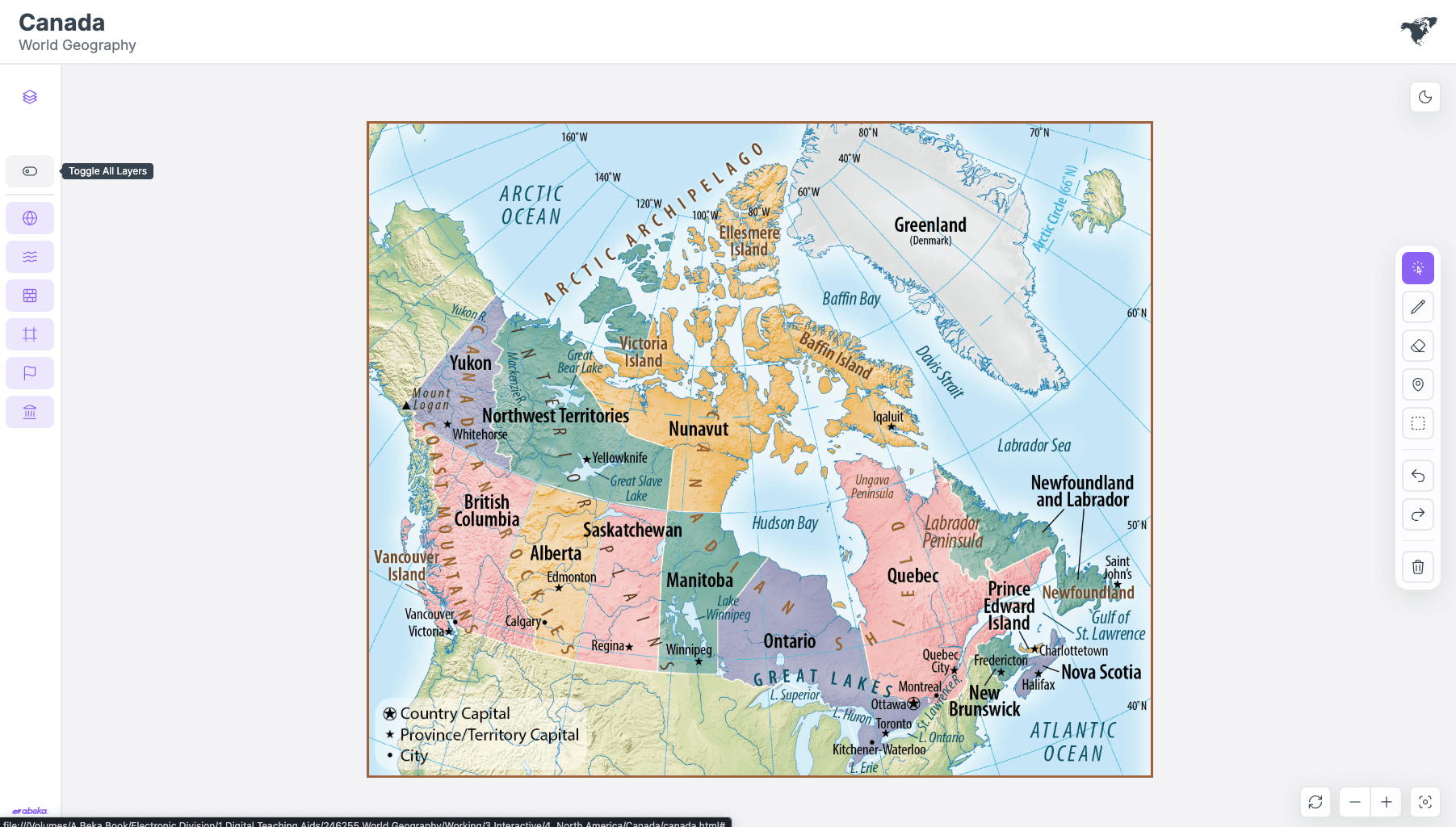 World Geography is an interactive map tool designed to help teachers deliver the new World Geography curriculum more effectively. The product replaces static, high-resolution map images with a flexible, layered system that supports exploration, comparison, and live classroom collaboration.